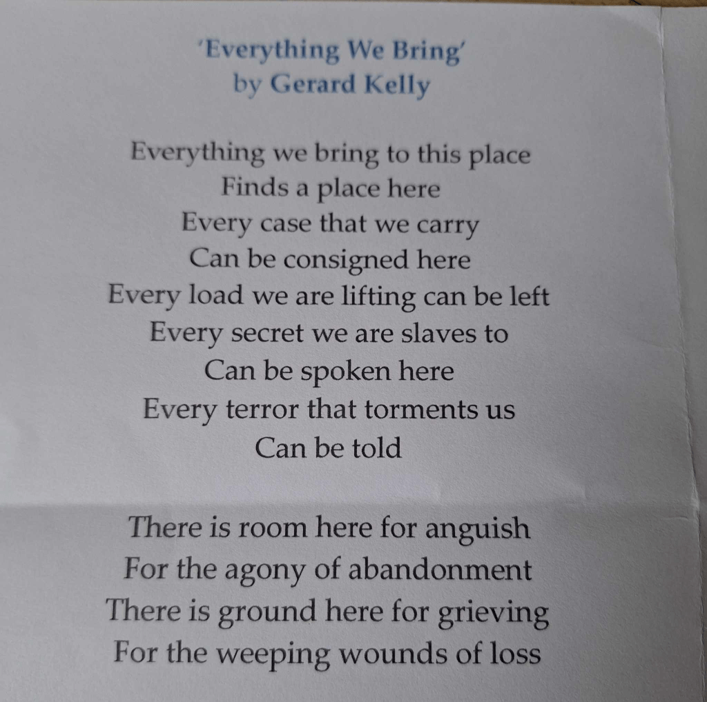 The priest who gave the thought at our Village Good Friday ‘stations of the cross’ read this poem today.